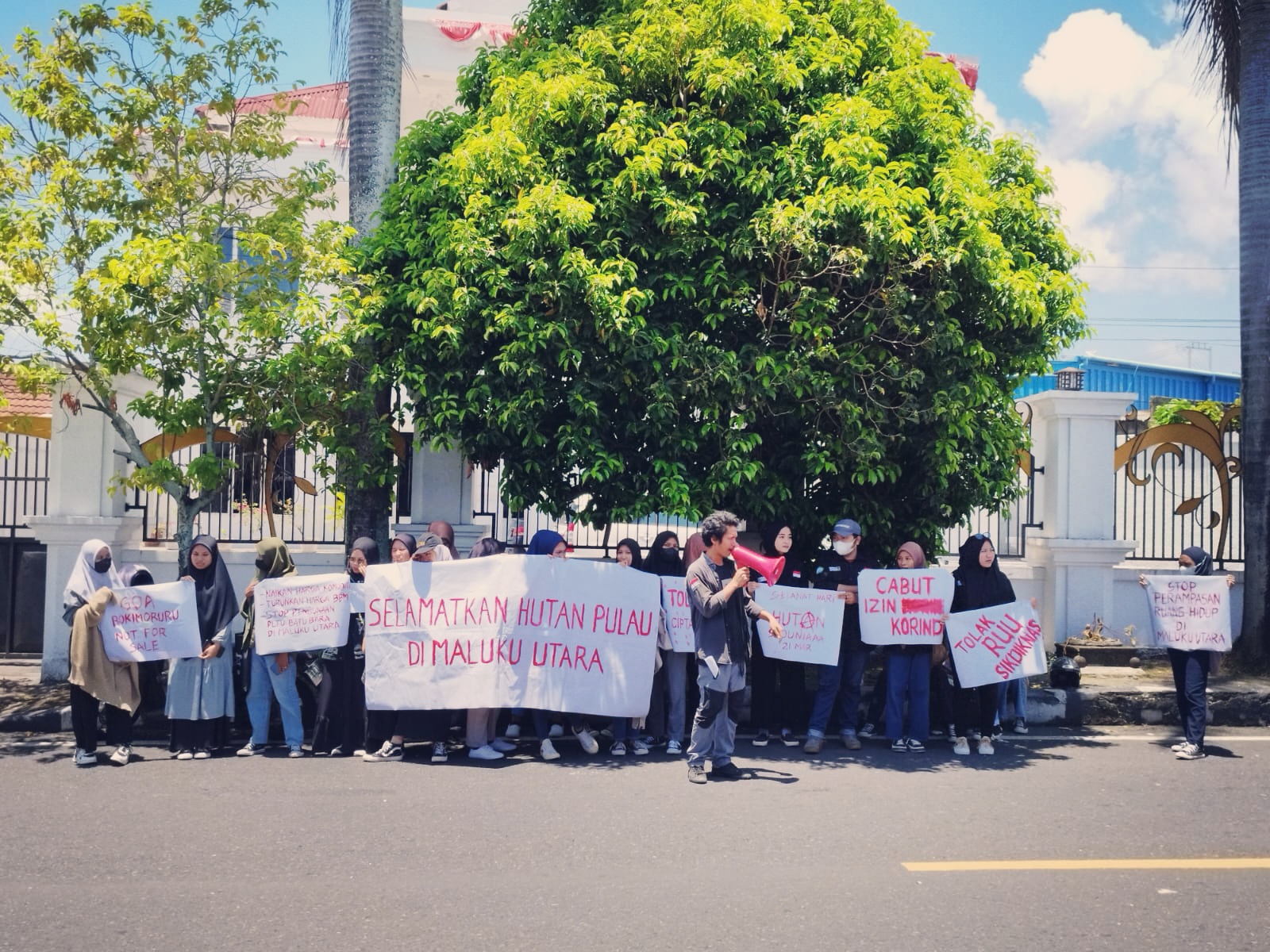 Tuntutan tersebut disampaikan dalam aksi Hari Hutan Sedunia dan Hari Air Sedunia bertempat di depan kediaman Gubernur Maluku Utara (Malut) dan di Landmark Ternate, Selasa (21/3/2023).