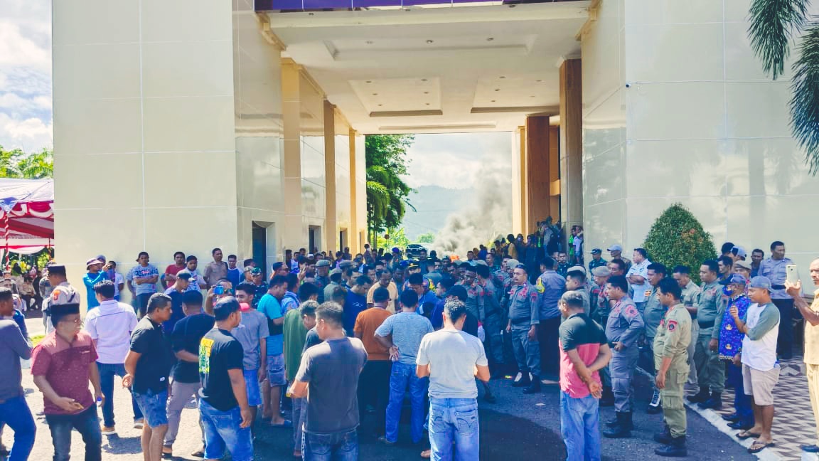 “Sekda sudah kabur melalui jalan belakang dia tidak mau menyelesaikan permasalahan ini kami sangat menyayangkan,” sesal salah seorang demonstran.