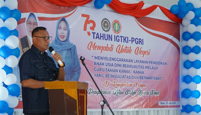 Jazirah Indonesia – Wakil Walikota (Wawali) Tidore Kepulauan Muhammad Sinen, peringatan Hari Ulang Tahun (HUT) ke 73 Tahun Ikatan Guru Taman Kanak-Kanak Indonesia (IGTKI) PGRI Kota Tidore Kepulauan, Kamis (15/6/2023).