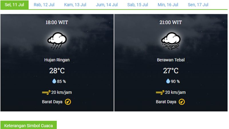 Jazirah Indonesia – BMKG Sultan Baabullah Ternate memberi peringatan dini potensi terjadinya hujan sedang hingga lebat pada malam hari di wilayah Batang Dua, Taliabu, Bobong, Mangole dan sekitarnya.