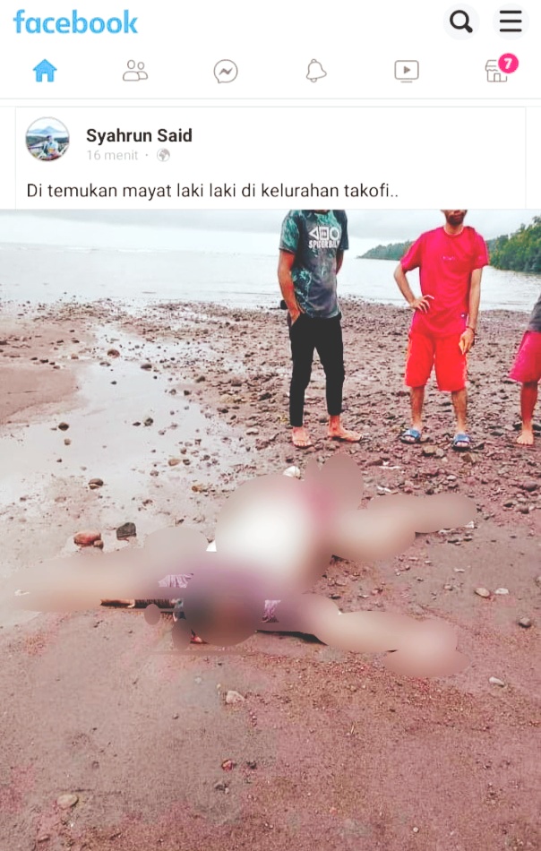 Pukul 08.50 Wit, saat sedang melakukan pencarian, Tim SAR menerima informasi dari warga melalui postingan akun Facebook Syahrun Said bahwa ditemukan mayat terdampar di pesisir pantai Takofi, Pulau Moti. Tim SAR gabungan lalu bergerak menuju lokasi untuk melakukan pengecekan.