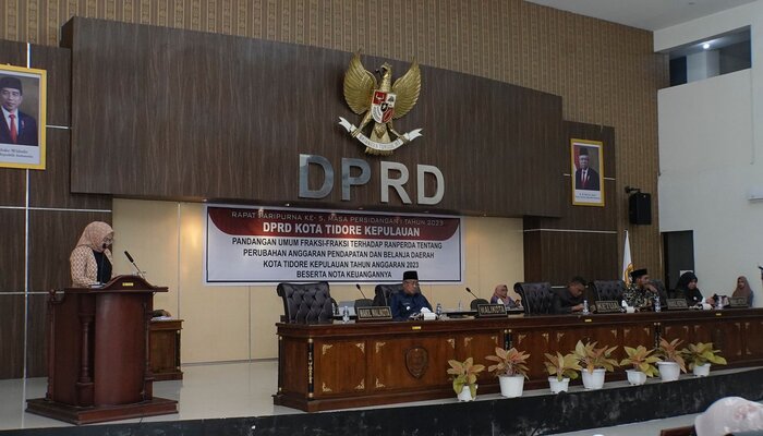 Jazirah Indonesia – Fraksi-fraksi DPRD Kota Tidore Kepulauan (Tikep) menyampaikan pandangan umum terhadap nota keuangan dan Rancangan Perubahan Anggaran Pendapatan dan Belanja Daerah (RPAPBD) Kota Tidore Kepulauan Tahun 2023.