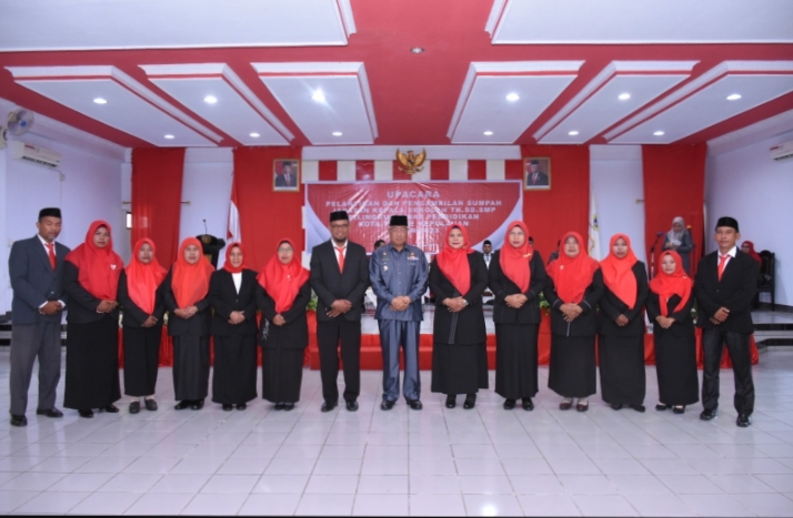 Upacara Pelantikan dan Pengambilan Sumpah jabatan Kepala Sekolah berlangsung di Aula Sultan Nuku Kantor Walikota Tidore, Senin (25/9/2023).