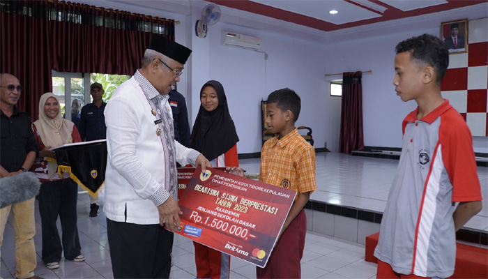 Pada kesempatan ini juga Walikota Ali menyerahkan Beasiswa Akademik dan non Akademik Tahun 2023 Tingkat SMP dan SD se Kota Tidore Kepulauan bertempat di Aula sultan Nuku Kantor Walikota Jumat (13/10/2023).