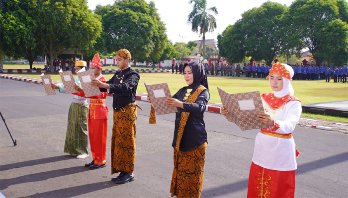 Kemudian, pembaca Teks Keputusan Kongres Pemuda Indonesia Tahun 1928 Gabungan Organisasi Paguyuban Kota Tidore Kepulauan dan Pembaca Doa Nurhafni Yunus Anggota Fatayat NU Kota Tidore Kepulauan.