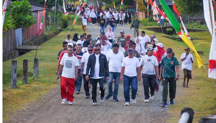 Jazirah Indonesia – Wakil Wali Kota Tidore Kepulauan Muhammad Sinen bersama sejumlah pimpinan OPD, tenaga Medis, siswa SD, SMP, SMA beserta Ratusan Warga Kecamatan Oba Selatan menggelar kegiatan Jalan Sehat.