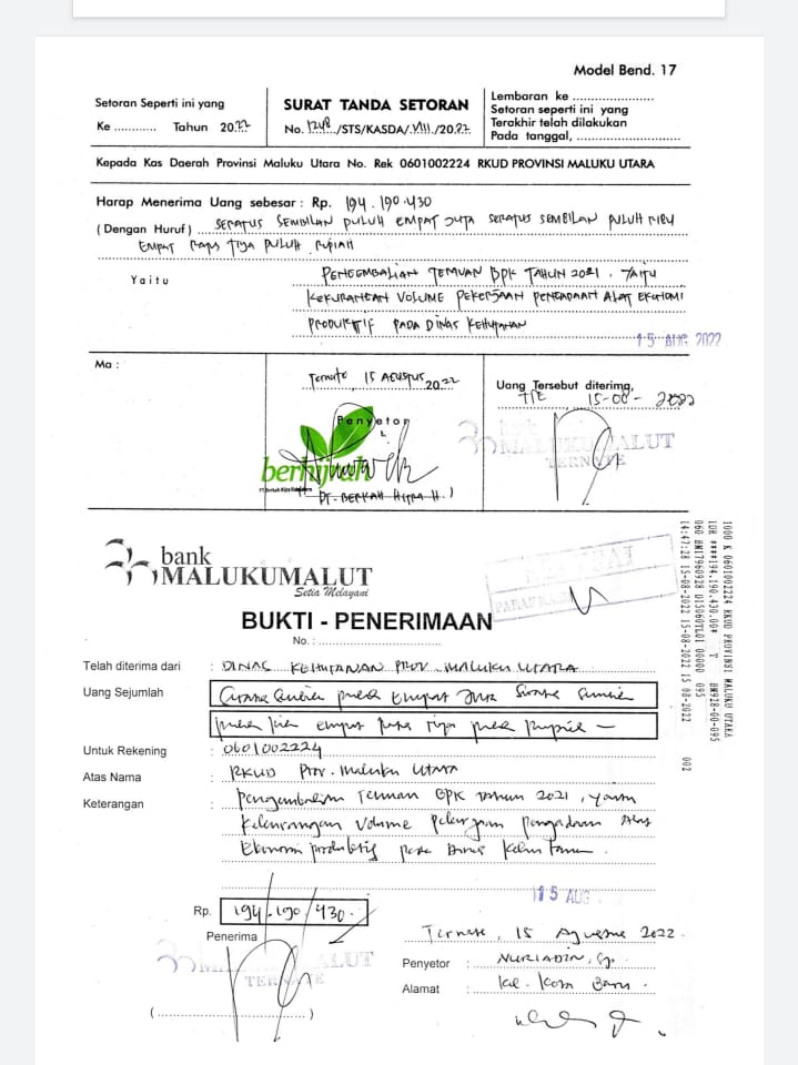 Syukur menegaskan, rekomendasi temuan BPK RI Perwakilan Malut tahun 2022 atas Proyek Ekonomi Produktif tahun 2021 telah ditindaklanjuti atau di kembalikan pada 15 Agustus 2022 lalu.