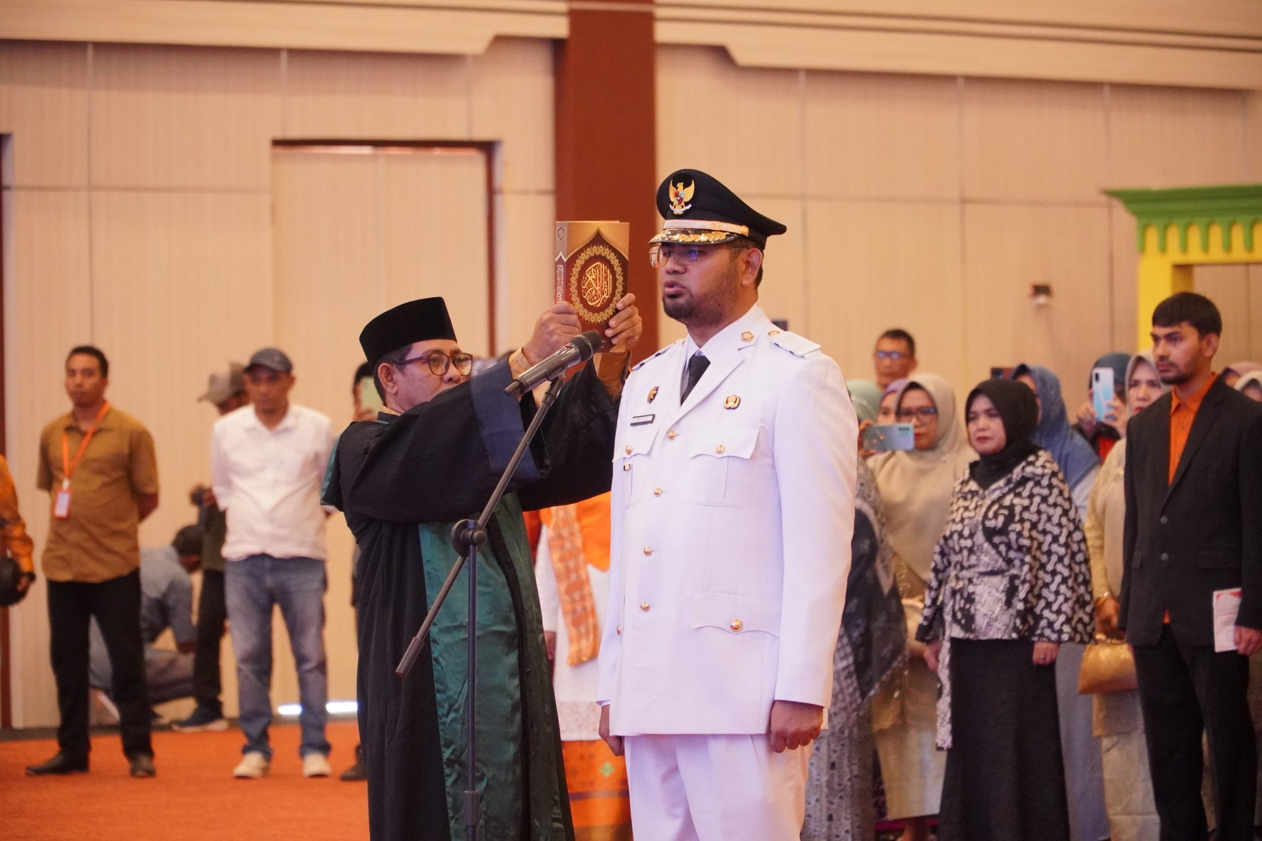 Usai pembacaan kata-kata pelantikan, Bupati Halmahera Selatan menandatangani Berita Acara Sumpah Jabatan dan Pakta Integritas.