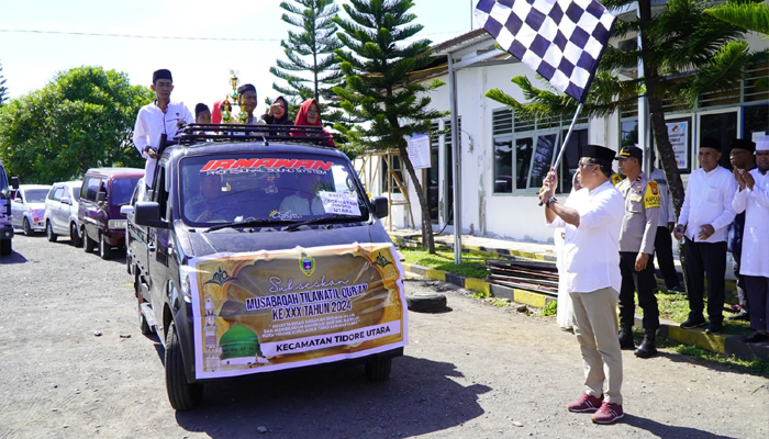 Lintas3.com – Menyongsong pelaksanaan Musabaqah Tilawatil Qur’an (MTQ) XXX Tingkat Kota Tidore Kepulauan, Pemerintah Daerah gelar Pawai Ta’aruf yang mengambil start di Pelabuhan very kelurahan Rum dan Finish di Halaman Kantor Walikota Kelurahan Tomagoga, dilepas oleh Sekretaris Daerah Kota Tidore Kepulauan Ismail Dukomalamo, di halaman Pelabuhan Very, Jumat (16/2/2024).