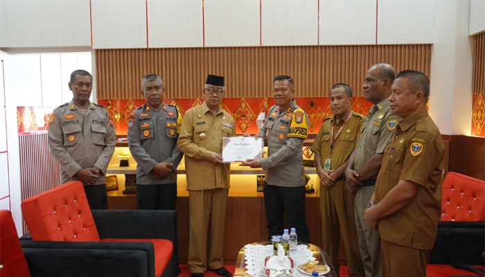 Penghargaan dalam bentuk piagam diserahkan langsung oleh Walikota Tidore Kepulauan Capt. H. Ali Ibrahim kepada Kapolresta Tidore yang diwakili oleh Wakapolresta, AKBP Edy Sugiharto, di Ruang Kerja Walikota, Selasa (27/02/2024).