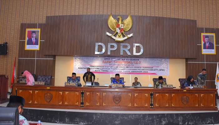 Pandangan Fraksi ini diagendakan pada Rapat Paripurna ke-7 masa persidangan III atas penyampaian pandangan umum fraksi-fraksi terhadap Rancangan Peraturan Daerah (Ranperda) tentang Laporan PertanggungJawaban Pelaksanaan (LPP) Anggaran Pendapatan dan Belanja Daerah (APBD) Kota Tidore Tahun 2023.