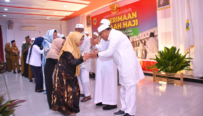 Lintas3.com, Tidore – Walikota Tidore Kepulauan yang diwakili Asisten Sekda Bidang Administrasi Umum Drs. Yakub Husain menerima kembali Jamaah Haji Kloter 11 Kota Tidore Kepulauan Tahun 2024 di Aula Sultan Nuku Kantor Walikota Tidore, Senin (8/7/2024).