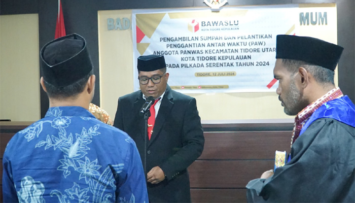 “PAW ini dilakukan berdasarkan urutan peringkat dari hasil seleksi yang dilakukan Bawaslu Kota Tidore Kepulauan pada seleksi Panwascam untuk Pilkada 2024 lalu. Tak hentinya saya terus mengingatkan agar tetap menjaga integritas, Independen, bertanggungjawab dan bekerja sungguh-sungguh dalam menjalankan tugas pengawasan pada Pemilihan Tahun 2024,” tuturnya.