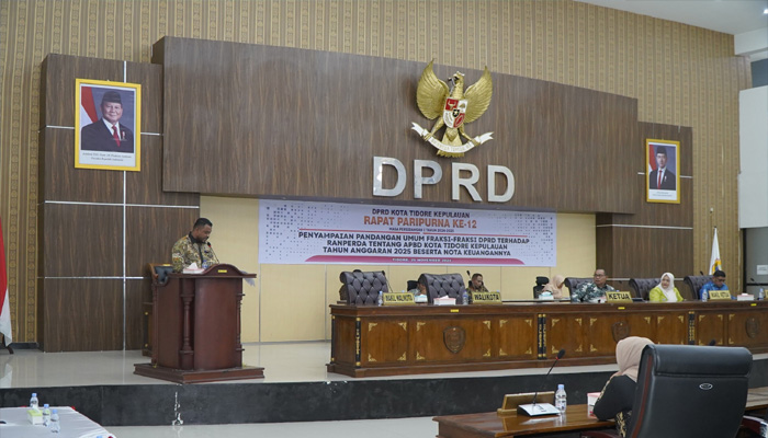 Dalam rapat Paripurna tersebut, 3 dari 4 fraksi DPRD Kota Tidore Kepulauan melalui juru bicara masing-masing telah menyetujui Rancangan Peraturan Daerah (Ranperda) tentang Anggaran Pendapatan Belanja Daerah (APBD) Kota Tidore Kepulauan Tahun Anggaran 2025.