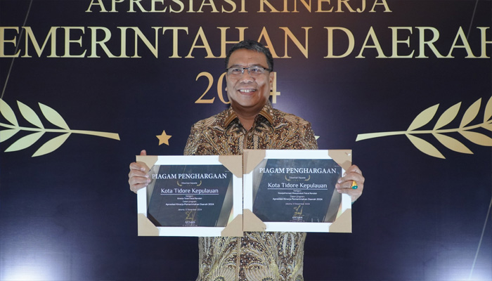 Tak tanggung-tanggung, Pemerintah Daerah Kota Tidore Kepulauan berhasil meraih dua penghargaan sekaligus, masing-masing kategori Kesejahteraan Masyarakat dengan Fiskal Rendah dan Kategori Kinerja Total dengan Fiskal Rendah.