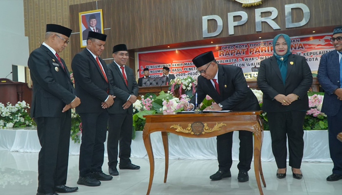 Rapat tersebut dipimpin oleh Ketua DPRD Kota Tidore Kepulauan Drs. H. Ade Kama didampingi Wakil Ketua Asma Ismail dan Ridwan Moh. Yamin, serta disaksikan langsung oleh Wali Kota Tidore dua Periode Capt H. Ali Ibrahim di Gedung DPRD Tidore, Jumat (7/2/2025).