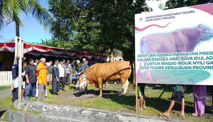 Bantuan hewan kurban berupa sapi ini diserahkan langsung oleh Wakil Wali Kota Tidore Kepulauan Ahmad Laiman kepada panitia Kurban Masjid Induk Nyili Gamtufkange, Kecamatan Tidore, yang berlangsung di Belakang Masjid Induk Nyili Gamtufkange, Sabtu (7/6/2025).