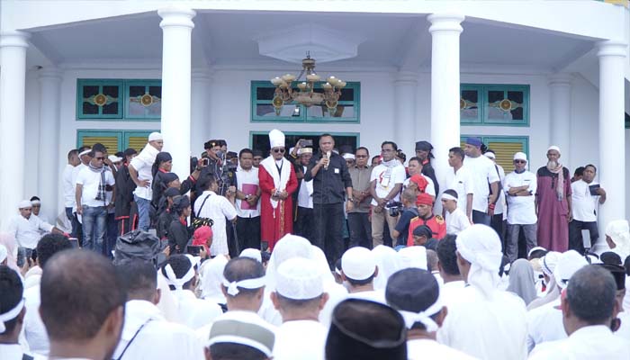 “Persoalan DOB Sofifi ini, jangan hanya mengatasnamakan masyarakat Oba, prosesnya ini dari sisi mekanisme tidak memenuhi syarat, karena Sofifi itu wilayahnya Kota Tidore, “ kata Muhammad Sinen saat aksi Warga Masyarakat yang tergabung dalam Presidium Rakyat Tidore di Halaman Kedaton Kesultanan Tidore, Kamis (17/7/2025).