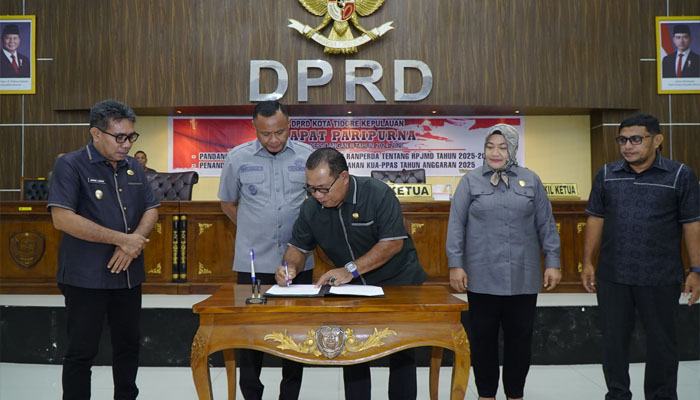 Lintas3.com, Tidore – Wali Kota Tidore Kepulauan Muhammad Sinen didampingi Wakil Wali Kota Tidore Kepulauan Ahmad Laiman bersama Dewan Pimpinan DPRD Kota Tidore Kepulauan menandatangani Nota Kesepakatan Kebijakan Umum Perubahan Anggaran (KUPA) dan Perubahan Prioritas Plafon Anggaran Sementara (PPAS) Tahun Anggaran 2025.