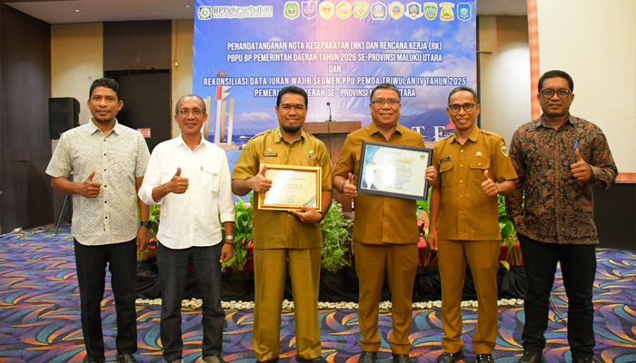 Selain itu, BPJS Kesehatan juga memberikan apresiasi kepada Kota Tidore Kepulauan sebagai Pemerintah Daerah yang telah berkontribusi aktif dalam program Jaminan Kesehatan Nasional- Kartu Indonesia Sehat (JKN-KIS) BPJS Kesehatan, dengan secara tertib melaksanakan kewajiban pembayaran segmen Iuran wajib bagi peserta penerima upah (PPU) Pegawai Negeri Sipil Daerah (PNSD) Periode Triwulan IV Tahun 2025.